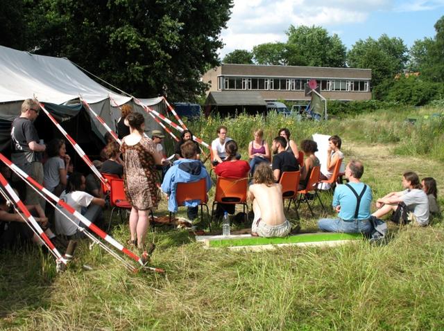 De wijkagente heeft gebeld, maar heeft pas morgen zin om langs te komen. En het lijkt erop dat de gemeente wel iets verwachtte, maar geen problemen heeft met het plaatsvinden van het kamp. Voorbijgangers zijn geïnteresseerd en overwegend positief. Sommigen denken dat wij de plannen voor een te bouwen hostel voor verslaafde daklozen tegen willen houden. Dit komt echter aan de straat terwijl het door ons bezette veld daar achter ligt.
