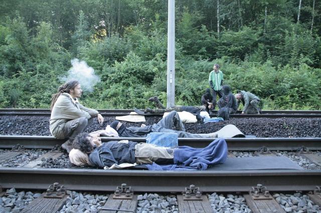 Dit is een onafhankelijke aktie, die wel met de vorige blokkade enige honderden meters verderop in verband staat. Het doel is het verder afgraven van de Rijnlandse bruinkoolconcessie zo effektief mogelijk in de weg te staan, dan wel te liggen, en staan een volledige herstrukturering van het beleid voor fossiele brandstoffen voor. Ze kunnen zich niet zelf van de sporen losmaken, maar moeten door een technische eenheid van de politie losgemaakt worden. Bij vergelijkbare akties duurde het ontruimen meerder uren