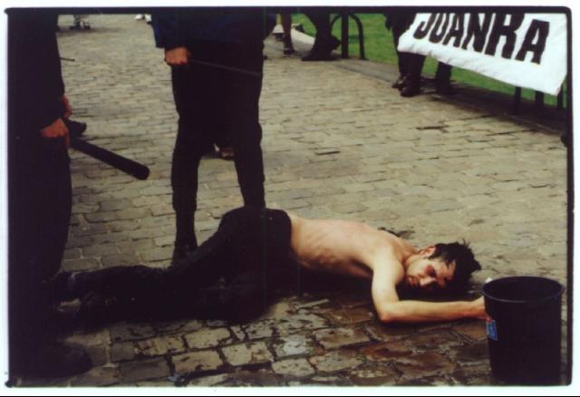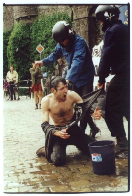 Maar is deze demo nu in belgie of spanje gehouden, ik denk belgie, ja? En die smerissen zijn dus belgisch en niet spaans? Anyway, die fotos zullen hun weg wel vinden naar "het publiek" en ik hoop dat er ens wordt nagedacht over "veiligheid", of "meer blauw" ook "meer veiligheid" betekend. In elk geval niet voor diegenen die niet het zelfde als de staat zeggen. | | De Volkskrant 11 juni | M02 - 11.06.2002 15:16