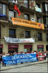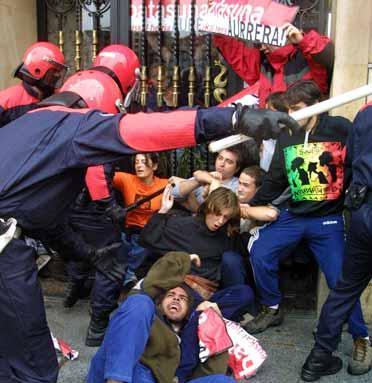 Because BATASUNA has been seeking democracy, justice and self-determination for the Basque Country and its people, BATASUNA is about to be illegalized.  MORE FASCISM  MORE FASCISM           Batasuna (known previously as Herri Batasuna and Euskal Herritarrok) is a left-wing political coalition in the Basque Country. Because it has been seeking democracy, justice and self-determination for the Basque Country and its people, it is about to be illegalized. By doing so, the Spanish government is actually trying to illegalize 250,000 Basque citizens (out of a population of 3 and a half millions!). The Spanish government is desperate to be rid of the Basque resistance, making the most of the international context following September 11. After using false arguments saying that Batasuna is ETA and vice-versa, the Spanish government has just released the new Law of Political Parties (Ley Organica de Partidos Politicos), wich enables the government to declare a political party illegal. Batasuna has a legal political activity, it represents a large amount of citizens across the Basque Country. Spain keeps torturing and goes against Basque Country’s rights. They closed down a paper (Egin), a magazine (Ardi Beltza), a radio (Egin Irratia), they have already illegalized Segi (youth movement), civil disobedience groups such as ABK and Joxemi Zumalabe Foundation and many of ther members were sent to jail. All that has been organised and executed by “super-judge” Baltazar Garzon on behalf of the spanish government (the executive would not interfere in the legislative in a real democracy...). It is time now to say STOP and to condemn Spanish interferences in the Basque Country. If Spain was a genuine democracy, the Basque people would have their right to decide of their own future... We encourage anyone to get in touch with the Basque Campaign in order to obtain more information about the conflict in the Basque Country. Website: http://www.basque-red.net |