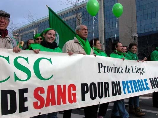 Naar schatting 10.000 mensen hebben zondag in Brussel betoogd tegen een mogelijke oorlog tegen Irak. Ze beantwoordden de oproep van de coordinatie Geen Oorlog, die ruim 130 organisaties en groepen bundelt. De kop van de stoet werd andermaal gevormd door een militant blok van mannen en vrouwen uit de migrantengemeenschappen. Verderop liepen opgemerkte delegaties van de christelijke en socialistische vakbonden. Nagenoeg alle manifestanten keerden zich vandaag uitdrukkelijk tegen de Verenigde Staten. Ook de steun aan Palestina was manifest.