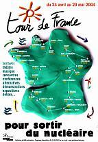 http://www.sortirdunucleaire.org   Ingang kerncentrale Fessenheim  Demonstratie Fessenheim 24-04-04  kerncentrale Fessenheim Van 24 april tot 23 mei 2004: Un tour de France pour sortir du nucléaire Europese tour tegen kernenergie Op 24 april start een Europees project tegen de nucleaire dreiging. Een maand lang trekt er een grote groep mensen uit diverse Europese landen door Frankrijk om informatie te geven over kernenergie en de gevaren daarvan en de vele mogelijkheden van duurzame energie. Ook is er ruim aandacht voor het militair gebruik; kernwapens en uraniummunitie. Dit gebeurd door middel van theater, muziek, expositie en video's. Een laagdrempelig project, bedoeld om miljoenen mensen direct en indirect (via de media) te informeren. Het initiatief voor dit project is uit Nederland afkomstig en ondertussen een van de belangrijke campagnes van het franse netwerk "Sortir du nucléaire" voor 2004. Milieuorganisaties als 'Greenpeace' en 'Friends of the Earth Europe' ondersteunen deze Tour. Een doelstelling is ook, net als rond onderwerpen als WTO en globalisering, meer internationale samenwerking tot stand te brengen, tegen kernenergie en tegen de nieuwe pro-nucleaire lobby van industrie en politici. De Tour zal beginnen met een grote manifestatie/demonstratie tijdens het weekend voorafgaande aan Tsjernobyldag (26 april) 2004. Waarom in Frankrijk? Frankrijk is de belangrijkste nucleaire elektriciteits-producent in West Europa en een belangrijke exporteur hiervan o.a. naar Nederland. Frankrijk heeft de intentie om een nieuwe kerncentrale te bouwen; de EPR (European Pressurised Reactor). Dit kan het begin zijn van een nieuwe generatie kerncentrales in Europa. Frankrijk lijkt niet serieus en intensief te investeren in duurzame energie. Frankrijk wil niet overgaan tot vermindering en afschaffing van haar kernwapens; hiermee handelt Frankrijk in strijd met het non-proliferatieverdrag. Werkwijze Mensen uit verschillende Europese landen zullen een route volgen langs alle onderdelen van de nucleaire keten (onderzoek, uranium mijnen, verrijking, kerncentrales, militaire plaatsen, opwerking, vervoer en opslag van radioactief afval). Uiteraard zullen we tussen verschillende 'nucleaire' locaties ook plaatsen van duurzaam belang aandoen. Bij de "locatie van de dag"(nucleair of duurzaam), zal 'n kort theater/muziek spektakel worden opgevoerd door de deelnemers. De ontvangende groep (plaatselijk en regionaal) wordt gevraagd op hun manier een bijdrage te leveren en informatie te geven over datgene dat ter plaatse gebeurt en te spreken over hun campagne. Daarna wordt er gezamenlijk in parade vanaf zo'n 2 tot 3 km buiten het centrum van de meest dichtbijgelegen stad naar de slotlocatie getrokken. Hier zal een uitgebreider programma theater/muziek gemaakt worden met expositie en video om de bevolking te informeren. Gedurende de Tour zullen de deelnemers samenwerken aan het slotspektakel, spandoeken enz. In principe gaat "Federatie Kookkollektief Rampenplan" voor maaltijden en Theaterstraat voor praktische zaken als vervoer, podium en geluid zorgen. Oproep Voor dit project is veel geld nodig. Financiële steun is dan ook heel hard nodig ! Daarom doen we een dringend beroep op eenieder die dit project wil ondersteunen om een bijdrage te storten op: Gironummer 9634523 t.n.v. TOUR DE FRANCE PSDN, AMSTERDAM Heb je ideeën wat betreft artiesten uit Nederland of elders in Europa, of relevante organisaties en bedrijven die dit project (financieel) willen ondersteunen laat dit dan svp weten. Meer informatie: "Sortir du nucléaire": http://www.sortirdunucleaire.org E-Mail: ocn@antenna.nl Website: http://www.organicchaos.org |