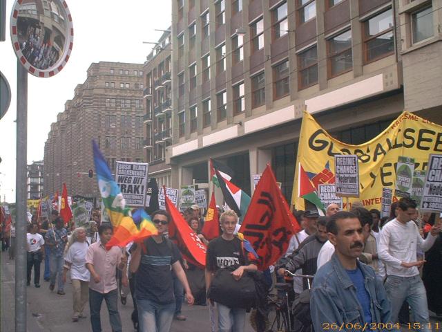 Hoewel ik graag zou willen dat er honderduizenden mensen de straat op zouden gaan tegen de verschrikkelijke bezetting van Palestina én de misdaden van het Yankee imperialisme in Irak, vind ik tegelijkertijd dat we er weinig mee opschieten om dingen op te blazen. Tweeduizend waren er nooit afgelopen zaterdag! Zelf schatte ik in 500 - 1000. Het ANP - altijd aan de lage kant - had het over 500. Maar 2000 mensen waren het er inderdaad nooit. En op zich maakt dat niks uit. Je verzwakt zo'n protest alleen maar door geen reëel beeld te gevn.