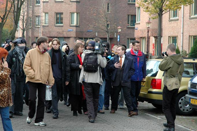 Hier twee foto's van vanmiddag rond 14 uur. Er waren 3 mannen van Nieuw Rechts gekomen. Op de foto's zie je een man in een lichtbruine jas, direct rechts naast hem zie je Ruud Bruyns met brilletje. Michiel Smit is de man met stropdas die nog een interview tracht te geven. En dat het de mond snoeren van fascisten zelf dan ook een fascistische daad zou zijn is een wel erg simplistische redenering. Dan zou een politieagent die een siegheilende skinhead oppakt ook een fascistische daad verrichten doordat hij die skinhead zijn meningsuiting belemmerd? Ik vind dat je bij racisme, net als bij laster en smaad, een grens overschrijdt, waarbij je de vrijheid van meningsuiting misbruikt om haat te zaaien of bevolkingsgroepen zwart te maken. Prima dus dat er gelukkig nog mensen zijn die daar een stokje voor steken. En ook mooi dat dit op zo'n beheerste manier gebeurd is. Want als die groep echt kwaad had gewild waren die 3 fasco-mannetjes en 4 agentjes echt geen partij geweest. | | Trol allert | parel - 30.10.2004 19:14