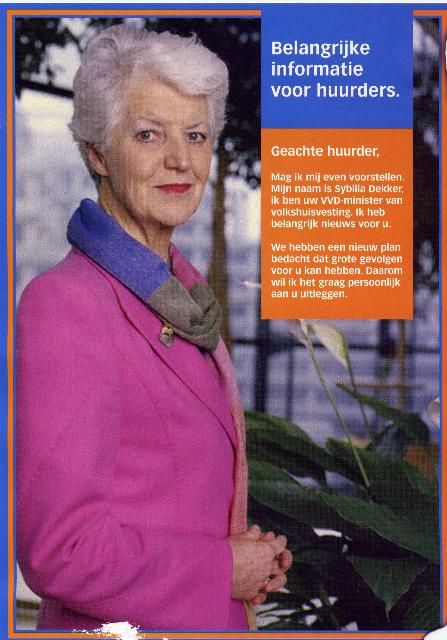 Uitgebreid stuk in NRC van vanavond over de folder ("Dekker boos op onbekende"). Volgens het stuk laat Dekker de actie "juridisch onderzoeken". Iemand van de Huurdersvereniging A'dam verklaart dat de actie "een niet elegant antwoord is op een lomp huurbeleid". | | Persbericht VROM | ok - 09.12.2004 12:17