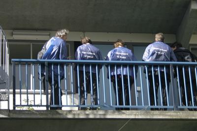 Wie zijn zij, die denken ongestraft te mogen snuffelen in onze woningen, onze klerenkast en wasmand; die onze post en administratie willen inzien; die verantwoording willen over de schamele bezittingen die we hebben; die willen weten met wie en hoe vaak we het bed delen en waar dan.De projectgroep ‘Controleurs in Beeld’ wil weten wie zij zijn, zij die niets te verbergen hebben?      inkijoperatie Wie controleert de controleurs? Manon weer niet thuis? Een verlaat bericht. “Van mij mogen de 'controleurs in beeld' nog eens langskomen. Nu ik veel thuis ben vanwege mijn zwangerschapsverlof, is de kans groot dat ze me treffen en dan is er tijd voor een goed gesprek. En ja, ik heb meerdere tandenborstels, maar ik heb dan ook geen uitkering. Deze huisbezoeken hebben in Amsterdam al flink wat fraude aan het licht gebracht, dus mijn partij is daar voor. Wel hebben we een aantal weken geleden in de raadscommissie gezegd dat mensen netjes behandeld en bejegend moeten worden. De wethouder heeft dat beloofd en ik ga er vanuit dat de sociale dienst dat nu goed doet.” Dat zei Manon van der Garde, commissielid Werk en Inkomen in haar weblog vorige week toen Controleurs in Beeld tevergeefs bij haar aanbelde. (www.manonvandergarde.nl/weblog/mei05.html) Vandaag was de herkansing maar Manon liet het wederom afweten. Niet thuis of nog niet wakker, in ieder geval geen enkele respons toen de projectgroep bij haar voor de deur stond. Driftig aanbellen, kloppen op het slaapkamerraam, hoorbaar aanwezig zijn op de galerij, niets hielp, terwijl haar vertrouwde Puch-fiets toch keurig op straat geparkeerd stond; meestal een betrouwbare indicatie dat ze er is. Manon heeft meerdere tandenborstels, maar heeft dan ook geen uitkering. We hebben er nog eens over nagedacht, wat staat daar nou? En ja, dat is de essentie. Manon heeft “dan ook geen uitkering”. Dat verheft haar boven het gepeupel, de losers, de profiteurs. Manon heeft geen uitkering en verdient het om anders behandeld te worden dan zij die wel een uitkering hebben. Manon heeft “dan ook geen uitkering”, zij werkt! We hebben er nog eens over nagedacht en ja, dat is de essentie. Niet de huisvrede, niet het recht op privacy, niet de voor iedereen geldende grondrechten zijn onderwerp van discussie, maar of de schending daarvan wel op een nette manier gebeurt? Vandaag hadden we Manon willen vragen hoe je dat doet, op een nette manier snuffelen in iemands wasmand, op een nette manier iemands afschrijvingen controleren, op een nette manier navraag doen naar iemands liefdesleven en ga zo maar door. Hoe je op een nette manier fraude kunt opsporen? De wetgever heeft dat wel bedacht, met allerlei richtlijnen over opsporing en waarborgen voor verdachten, maar ja, dat geldt enkel voor mensen die “dan ook geen uitkering hebben”. Zie ook: