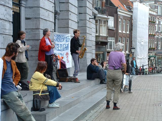 Anarchistische antideportatiegroep Utrecht organiseerde in Utrecht een vluchtalarm aktie. Op de stadhuisbrug werd er met basklarinet, sacofoon, trommel en andere atributen een uur lang flink herrie geschopt. Het weer was mooi en mensen namen gretig folders aan.