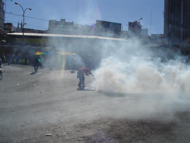 Honderden mijnwerkers en leden van de inheemse aymaragemeenschap werden geconfronteerd met intensief traangasgebruik door de politie in de omgeving van Plaza Murillo, waar het presidentieel paleis zich bevindt.