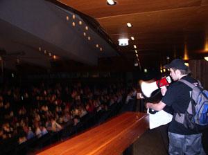 Surprise surprise - we'll be where you least expect it! Yesterday afternoon 4 activists interrrupted the BIOTRANS 2005, which took place at the Technical University in Delft, The Netherlands. One of the speakers on this conference was from the Japanese company Ajinomoto, who are a customer of HLS, and thus pay HLS for carrying out animal cruelty. The conference was sponsored by evil farmaceutical and chemical companies such as Novartis, Akzo Nobel and more. Around half four this lovely afternoon, the activists made clear to Masakazu Sugiyama from Ajinomoto that as long as his company let's HLS conduct animal experiments, there wil be activists around to tell them to stop with the sicko experiments at HLS. The auditorium was full when we entered so we had a huge audience. One of the activists succeeded in climbing on the podium and telling people what he thinks about HLS - through the megafone! Unfortunately university security took his megaphone away from him and dragged him outside. Once outside, the megaphone was returned to us, and much to our surprise the security staff were sympathetic to our cause. This is to everyone who deals with HLS: Drop out or you will deal with us! Stop the killing! Stop the madness! Stop HLS!