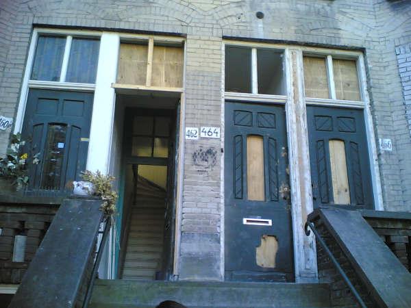 dit is idd Den Haag, de stad waar veel panden dicht zitten met planken -zoals dit pand voor het gekraakt werd- of gesloopt worden, terwijl er geen geld is voor nieuwbouw of de renovatie nog geen 10 jaar geleden is geweest. door het sprijdingsbeleid worden alle mooie huizen/plekken doorverkocht aan mensen die wel meer geld kunnen neerleggen. -bijvoorbeeld spoorwijk, veel ligt plat, nog een paar huizen staan, maar wanneer ze iets gaan doen is nog niet bekend. veel mensen zien zo hun straat langzaam verpauperen of voelen zich gedwongen hun geliefde buurt te verlaten. er was pas ook een illegale ontruiming van een net gekraakt pandje, want ondanks dat in Den Haag nog steeds gekraakt wordt, blijft deetman en zijn slaven een hekel hebben aan krakers. maar goed, wat ik gister van een bewoner hoorde over het pand in kwestie: het pand staat al lang leeg, vol met planken, is verder nog in goede staat. het is een mooi pand, volgens sommige met monumentale waarde. de eigenaar, woningcorporatie Vestia, wil het pand slopen, terwijl het nog in goede staat is. ze hebben een rechtzaak aangespannen die as. maandag de 26ste is. mensen met tips of ideeen over hoe je een monumenten status kan aanvragen, die kan je hier kwijt, mensen die nog een huis nodig hebben er is plek zat in Den Haag. Obrechtstraat 460-466a moet blijven! Kraken gaat door, de stad is van ons allemaal! | |