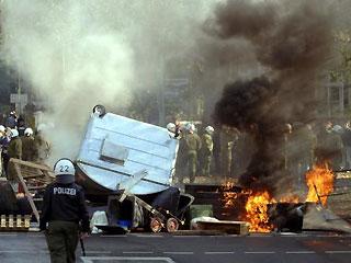 Zo’n 600 tot 1000 autonomen wierpen in kleine groepen ongeveer 30 barricades in de stad op die vervolgens in brand opgingen. Om de 30 tot 50 meter werden met vuilcontainers en bomen versperringen opgeworpen zonder dat auto’s van omwonenden het moesten ontgelden. De ruiten van het onderkomen van de rechtsextremistische studentenvereniging Holzminda werden allemaal ingegooid. De verenigingen hield kort gekleden een lezing met de nazi-generaal Günzel.