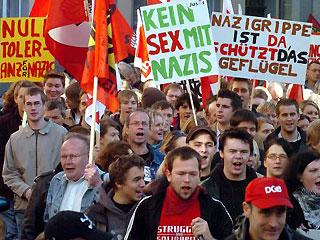 De kilomterslange tegendemonstratie in de binnenstad van Göttingen verliep overwegend vredelievend. Onder het motto ’Nazimars Stoppen’ hadden ruim 60 organisaties waaronder kerken, partijen en vakbonden tot de tegendemonstratie opgeroepen.