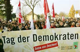 In de deelstaat Brandenburg had zich onder het motto ‘Dag voor de democraten’ een breed actiefront tegen de komst van de nazi’s gevormd, bestaande uit politieke partijen, vakbonden, kerken, verschillende initiatieven en verenigingen.