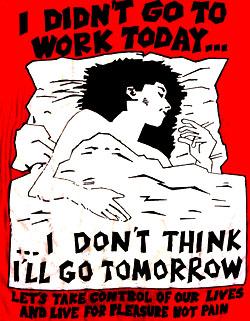Voor wie toetreding tot de Partij voor Minder Arbeid ( http://www.worklessparty.org/) waarvan vorig jaar de Nederlandse afdeling ( http://www.globalinfo.nl/article/articleview/703/) werd opgericht, nog een stapje te ver is: deze week is door het Canadese anti-consumptieblad Adbusters uitgeroepen tot slow down week. Zie hier de website, met een geinig filmpje:  http://adbusters.org/metas/eco/slowdownweek/#