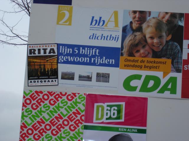 Het leek me een goede gelegenheid om maar een reisbureau rita poster op te hangen aan het verkiezingsbord. Misschien een idee om er meer door het hele land op te hangen aan deze borden?