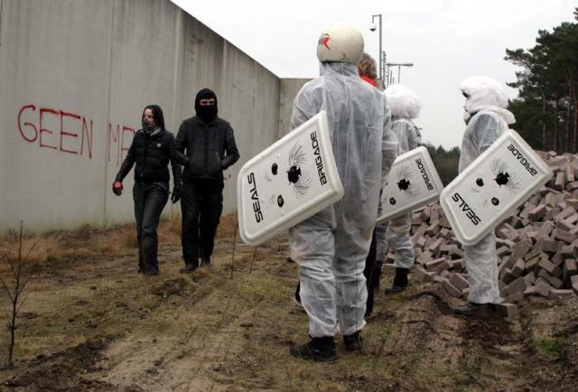 BURGERINSPECTIE EN LAWAAIDEMONSTRATIE BIJ DETENTIECENTRUM ZEIST - Activisten eisen vrijheid voor gevangen vluchtelingen Op dit moment zijn enige tientallen activisten uit het hele land bezig met een burgerinspectie op het terrein van Detentiecentrum Zeist. Ze proberen zo dicht mogelijk bij de vastzittende vluchtelingen te komen en aan zoveel mogelijk informatie te komen. Naar verwachting worden ze allemaal aangehouden. Buiten de hekken houdt een andere groep activisten een lawaaidemonstratie uit solidariteit met de in het centrum gevangen zittende vluchtelingen. Zie tijdlijn.