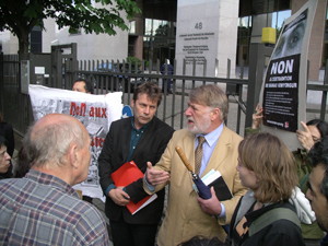 The support actions for the freedom of Bahar Kimyongür, spokesman of the DHKC Information Bureau in Brussels, who was arrested in the Netherlands with the pretext of an extradition demand by Turkey and is still kept at the Dutch prison Dordrecht near the Belgian border, continue. The campaign for his release is supported by a large number of people, among them also several Belgian parliamentaries and senators.   On 30th May, two Belgian senators, a parliamentary and the wife of Bahar Kimyongür held a meetings with the Dutch Embassador to Belgium. As a resulting of the ongoing campaign, MP's and senators, as for example Pierre Galand and Jean Cornil from the Socialist Party, which is recently in government, and Celine Delforge from the Green Party took part in this meeting. During the talk with the authorities around 25 people have gathered in front of the embassy, who carried banners. The group, which met with the Dutch embassador Rudolf Bekink, made a statement to the press when they left the building. According to our informations, both senators first of all had expressed their misgivings as regards these developments and announced that they’d speak in the name of many politicians who think in the same way. Pierre Galand summarised his words to the embassador as follows: “I said, that I know Bahar Kimyongür personally very well, sine the years when I was professor at the university and that I had great respect for his activities. I told that I wanted to be informed about the prison conditions of Bahar and asked wheter my country and The Netherlands were collaborating in this case. But the embassador answered that he hasn’t got any informations on that. I told him that this young person is doing nothing else than making public the human rights violations in his country and stressed that this can’t be a reason to extradit a Belgian citizen.” Belgian senator Jean Cornil said following in his speech: “I know Bahar personally very well. I admire his humanitarian character. Thanks to him I had the chance to go to Turkey and to meet with political prisoners’ families. I witnessed their great pains nearly. These days were very emotional and important for me. I’m telling this, because these are the activities which Bahar was busy with. Turkey ain’t a democratic country, we know this also from the reports of several institutions. Therefore we want you to say no to the extradition demand of Turkey”. Green MP Celine Delforge said, that she’s been in Turkey only two months ago and that she knows very well the repressive means used against the political opposition of the country. Therefore she also urged the authorities not to accept the extradition demand of Turkey. Bahar’s wife spoke about the dossier, that was shown as pretext for the extradition demand and added: “These accusations are completely groundless. It is said that he can’t be extradited, but they keep Bahar arrested with such funny reasons and they speak about extending his prison duration. We want him to be released at the first trial. Embassador Bekink stated, that he’ll make a request to see the trial as soon as possible and that he’ll forward the messages to his government. Finally he asked for “Faith in the Dutch Justice”. Bekink thanked senator and the parliamentaries for their informations and said to the wife of Bahar Kimyongür: “I want you to know that I’m with you with all my heart”. In his statement to the press Pierre Galand said, that he’ll follow up this case and that he’ll once again talk with the Justice Minister, who is member of the same party. Senator Jean Cornil announced, that him and other senators are gokng to visit Bahar Kimyongür in the coming days. (source: Halkinsesi TV, 30th May 2006) |