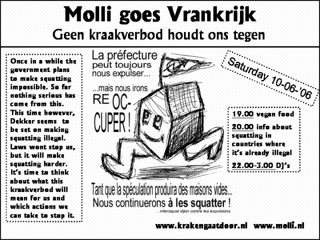 This saturday there will be a Molli goes Vrankrijk benefit night agains the new anti-squatting law.