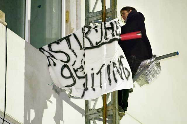 http://www.rtvwest.nl/nieuwsitem/2359 volgens tv west zijn inmiddels 7 mensen aangehouden. het kan op dit moment niet geverifieerd worden omdat er geen waarnemers van ons meer ter plekke zijn. Volgens de politie zitten de arrestanten op bureau Ridderveld. Waarnemers hebben wel gezien dat de 2 door de bratra losgemaakte personen ongeboeid zijn afgevoerd, en dat het goed met deze 2 mensen gaat. | | zeker 3 | arrestantengroep - 20.11.2006 13:54
