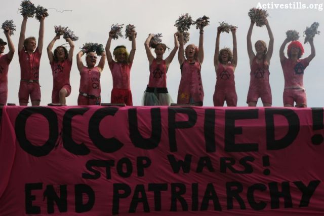 Following some anti-militarism rallies the military area began to be occupied as people began erecting tents to create a temporary settlement. A military tower was painted pink in a repeat of a previous action that saw the military destroying a similar tower when they couldnīt get rid of all the pink paint!