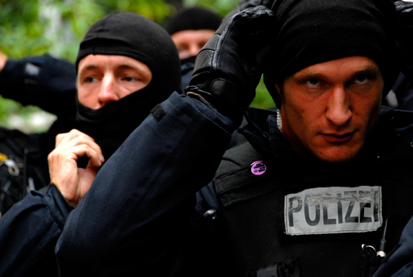 Anti G8 protesten update 11.00 - 13.00 Nadat vanochtend de demo bij het het lokale IND kantoor vreedzaam was geindigd, is de daaropvolgende manifestatie door toedoen van de politie in een chaos geeindigd. Om 11.00 begon er een manifestatie bij het S-Bahn station Rostock/Lichtenhagen. Daar werd in 1992 een huis waar migranten woonden door racisten in de fik gezet. Na presentaties van vakbondsleiders en anti/racistische groepen besloot de politie aan het einde van de manifestatie een paar mensen selectief uit de menigte te halen. Waarschijnlijk gebeurd dit op basis van foto's gemaakt tijdens de demonstratie van afgelopen zaterdag die eindigde in rellen. Toen er mensen uit de menigte werden gehaald, eindigde de manifestatie in chaos: demonstranten die zich verzetten tegen het selectieve politie optreden, politie die vervolgens pepperspray ging gebruiken, meer mensen die werden opgepakt en de menigde die uit elkaar gedreven werd, etc. De politie besloot vervolgens de S-Bahn van Rostock-Lichtenhagen alleen te reserveren voor demonstranten, zodat de politie rustig in de S-Bahn demonstranten kon fouilleren. Hierdoor moesten echter wel de ' gewone mensen' de S-Bahn verlaten. Een aantal mensen die niet uit de S-Bahn wilden vertrekken zijn door de politie hardhandig verwijderd. Daar zullen ze bij de lokale bevolking geen vrienden hebben gemaakt. De volgende manifestatie is van 13.00-14.00 bij het vluchtelingen kamp Satowerstrasse. E-Mail: marten@ojala.nl | | Een kijkje achter de schermen in de kampen | Nederlandse mediabus - 04.06.2007 20:43
