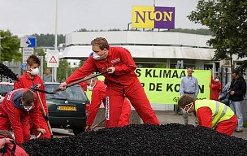 Actievoerders hebben donderdagmorgen een enorme berg steenkool voor het hoofdkantoor van Nuon in Amsterdam gestort. Greenpeace roept het energiebedrijf daarmee op te kiezen voor schone energie in plaats van kolencentrales.  Ondanks de mooie reclames, was van de elektriciteitsproductie van Nuon afgelopen jaar maar 5 procent afkomstig uit schone energiebronnen. Dat blijkt uit het vandaag gepubliceerde onderzoek Powering Profits van onderzoeksbureau SOMO. "Nuon denkt zijn vervuiling af te kunnen kopen door bijvoorbeeld het sponsoren van Live Earth. De grote investeringen gaan echter naar vuil in plaats van schoon", zegt Femke Bartels van Greenpeace. De verrijking van de bedrijven gaat ten koste van het klimaat. Het rapport geeft inzicht in de vuile productie en levering van elektriciteit door Nuon, Essent, Eneco, E.On, Electrabel en RWE. Daarnaast laat het rapport zien dat Nuon, Essent en Eneco, die eigendom zijn van provincies en gemeentes, jaarlijks tientallen miljoenen euro verdienen aan vuile energie. Essent en Nuon wekte het afgelopen jaar 15 respectievelijk 5 procent elektriciteit op uit schone energiebronnen in Nederland. Ook E.ON en Electrabel bezitten nauwelijks schoon vermogen in Nederland. Eneco produceert voornamelijk duurzame energie, maar omdat het veel grijze stroom verhandeld, is van alle stroom die zij aan de klant levert slechts 8 procent schoon. RWE verkoopt in Nederland de schoonste energie: 44 procent is afkomstig uit duurzame energiebronnen, maar dat wordt niet in Nederland opgewekt. RWE is overigens wel de grootste CO2-vervuiler van Europa. De investeringsplannen van de bedrijven geven weinig hoop voor de toekomst. "De totale brandstofmix voor productie van elektriciteit in Nederland wordt op deze wijze zelfs nóg minder duurzaam dan nu", aldus onderzoeker Tim Steinweg van SOMO. Hoewel de investeringen in schone energie toenemen, worden die overschaduwd door nieuwe kolencentrales die zorgen voor een toename van klimaatschadelijke emissies. Greenpeace toonde eerder met onderzoek van het DLR-instituut (het Duitse TNO) aan, dat een duurzame energietoekomst mogelijk is zónder kolen- en kerncentrales. Energiebedrijven kunnen daarmee vandaag beginnen door te investeren in warmtekrachtcentrales, windparken, en duurzame biomassacentrales. Onlangs maakte minister Cramer van VROM aan de Kamer bekend dat het kabinet vier nieuwe kolencentrales wil laten bouwen. bron: http://www.ravagedigitaal.org/2007nieuws/juli/49/49.php Website: http://www.ravagedigitaal.org |