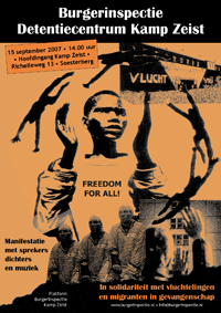 "Op zaterdag 15 september 2007 organiseert het platform Burgerinspectie Kamp Zeist een massale burgerinspectie bij Kamp Zeist. Mensen zullen het terrein van het detentiecentrum betreden om zichzelf van de situatie daar op de hoogte te stellen en de aandacht van de buitenwereld op de opsluiting van onschuldige mensen te vestigen. Het is belangrijk dat de omstandigheden waarin de gevangenen verkeren breed onder de aandacht gebracht worden. Het is onze plicht om deze afschuwelijke misstanden te controleren en aan de kaak te stellen."