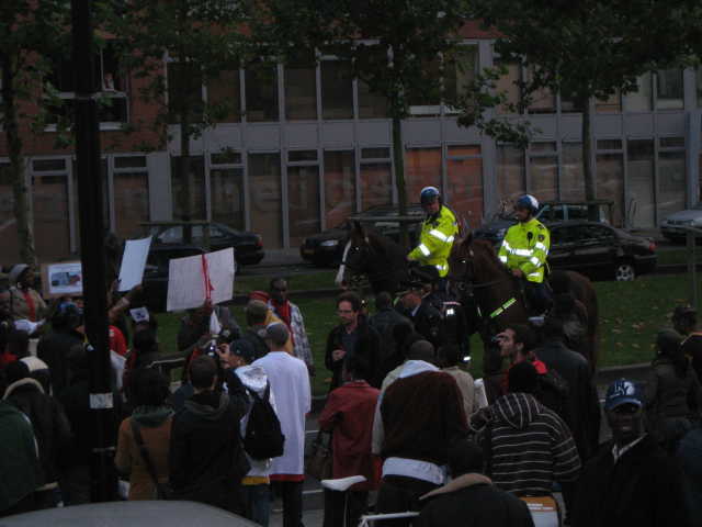 Pictures of the demonstration around the death of Michael Osey. Protesters were not happy with the statement about the death when the police final made it. It seems they ended having been forced to do so to everyone by people blocking the street.