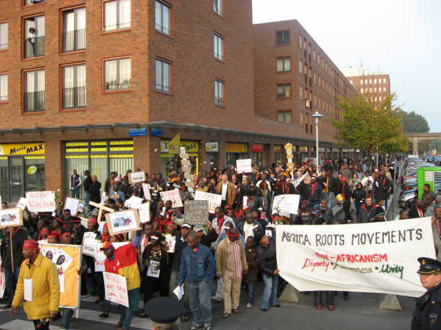The demonstration met at the metro station and marched with banners against racism, oppression, poverty and stating that no one is illegal.