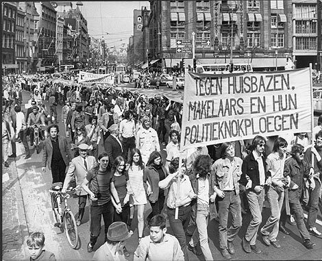 De Tweede Kamer, heb je daar wat aan dan, vraagt menig burger zich dagelijks af. Maar zo af en toe breekt ook daar de zon door...  Foppie Varenkamp, kamerlid van de Partij voor de Revolutie (PvdR), die sinds de verkiezingen van afgelopen herfst een kwart van de kamerzetels in bezit heeft (*), heeft aangekondigd te overwegen een wetsvoorstel in te dienen dat de handel in woonhuizen gaat verbieden. Volgens Varenkamp is het aantal criminelen in de huizenhandel schrikbarend hoog. Zo is meer dan de helft van de liquidaties die de afgelopen jaren in de hoofdstad uitgevoerd zijn, terug te voeren tot spekulatie op de vastgoedmarkt. Statistisch gezien is de rijkere bovenlaag van de maatschappij ook oververtegenwoordigd bij de huizenbezitters. "Dat zijn mensen die zelden eerlijk aan hun geld zijn gekomen, dat zijn kapitalisten die mens en natuur hebben uitgebuit voor eigen gewin, dat moet niet gestimuleerd worden. Veel huiseigenaren veroorzaken ook overlast tegen andere bewoners, de lijst pesterijen tegen huurders die ze het huis uit willen jagen om dat dan lucratief te renoveren, is eindeloos". "Maar het is eigenlijk zowiezo misdadig dat er commercieel gehandeld wordt in een basisnoodzaak, namelijk een dak boven je hoofd. Zeker als er schaarste op die 'markt' heerst. We leven niet meer in de middeleeuwen". Ook zouden er volgens Varenkamp drastische juridische maatregelen genomen moeten worden tegen de politici die de afgelopen jaren het sociale huisvestingsbeleid afgebroken hebben. "De VVD voorop, maar altijd geholpen door PvdA en CDA. Die hebben massaal huurders het huis uitgejaagd en mensen gedwongen huizen te kopen - waarvoor ze zich diep in de schulden moesten steken - terwijl ze dat helemaal niet wilden. Nu zitten ze aan zware hypotheken vast. Als ze hun baan verliezen, door outsourcing van diezelfde kapitalisten, raken ze ook hun huis kwijt. Opjaagbeleid op de woningmarkt, noemen we dat". Als directe oplossing ziet Varenkamp de massale onteigening van villa's en grote herenhuizen, en drastische verhoging van onder meer de vennnootschapsbelasting om daarmee weer een 'ouderwets' systeem van woningcorporaties te beginnen. Die zouden deze keer echter echt bestuurd moeten worden door de bewoners. "Maar dat zou een halve revolutie betekenen, dat zal nooit niet never via het parlement bereikt worden. Gelukkig zijn er veel mensen die zelf het heft in handen nemen. Veel mensen lossen hun woonnood op door woongroepen te vormen bijvoorbeeld, die nemen genoegen met een veel kleinere oppervlakte dan die egoistische huizenbezitters, en kennen de geneugtes van iets met anderen te DELEN. Verder hoop ik dat de kraakbweging weer de omvang van de jaren '80 krijgt, zodat er weer veel woonruimte op de spekulaten veroverd wordt en die weer het werk onmogelijk gemaakt wordt. Ondertussen kunnen we in de kamer hoogstens proberen een verbod op kraakwachtpraktijken in te stellen. De Partij van de Dieren heeft al verklaard het wetsvoorstel te zullen steunen, 'mits er ook aan de kippenhokken gedacht wordt'. ------------ (*) Over een goede verklaring voor de plotselinge populariteit van de PvdR, notabene nieuwkomer bij de verkiezingen, verschillen de meningen nog steeds. Het zal te maken hebben met het feit dat mensen langzaam maar zeker in de gaten krijgen hoe vervelend het kapitalistische systeem is waarin ze gedwongen worden te leven. Dat er aan de vooravond van de verkiezingen door een grote stroomstoring dagenlang geen tv was, en de bevolking dus eindelijk verlost was van het stompzinnige gekakel van de Paul Wittemannen en de eindeloze parade van Cliteurs, Boekensteinen en ander zang- en dansvermaak, zal ook zekere een rol gespeeld hebben. |