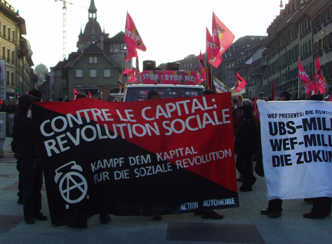Dit weekend werd in verschillende steden in Zwitserland weer gedemonstreerd tegen het World Economic Forum in Davos.