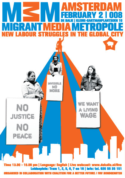 Hier het programma van de bijeenkomst rond migratie en syndicalisme in de Balie deze zaterdag, 2 februari. Entree gratis, Kom langs en zeg het voort! Here the programme of the gathering around migration and labour conflict this Saturday february 2, in de Balie. Entree is free, come by and spread the word!  [English below] [Programme even lower] Migrant / Media / Metropole New labour struggles in the global city Een transnationale discussie over migratie & arbeidsverhoudingen en daarmee samenhangende conflicten. Migratie en media-activisten analyseren samen met onderzoekers en vakbondsorganizers de 'best practices' in de strijd tegen precaire en onzekere arbeidsvoorwaarden, en delen inspirerende voorbeelden van nieuwe organisatie- en vakbondsvormen voor sociale rechtvaardigheid. Zij laten daarnaast nieuwe creatieve campagnes zien, zoals de ‘Justice for Janitors’-campagne in de V.S. en de campagne ‘Schoonmakers voor een betere toekomst’ in Nederland. Het doel is om traditionele vakbondspraktijken ter discussie te stellen en activisten, academici, mediamakers en kunstenaars te inspireren om deel te nemen aan hedendaagse arbeidsconflicten. Met: Enrica Rigo (Migratieonderzoeker) Marcel van der Linden (Arbeidshistoricus) Zoe Romano (Chainworkers Milano) Nico Scuglia (Oficinas de Derechos Sociales) Massimo De Angelis (the Commoner) Fé Jusay (Migrant Domestic Workers) Dagmar Diesner (No Borders London) Katrien Depuydt (Abvakabo) Sören Kohler (Multitude e.V.) Hagen Kopp (Migratieactivist) Juliano Vieira (Schoonmaker/Activist) Herrie Hoogenboom (Organizer FNV Bondgenoten) Franziska Bruder (Verdi) Voorafgegaan door een lancering van het boek Urban Politics Now! (NAi 2007). Gratis Entree! Datum | Zaterdag 2 februari Tijd | 13.00 - 18.30 uur. Taal | Engels Live webcast | www.debalie.nl/live Georganiseerd in samenwerking met Flexmens / Coalitie Voor een Betere Toekomst / FNV Bondgenoten ************** [English] ************** Migrant / Media / Metropolis New labour struggles in the global city Migration and media-activists gather with theorists and labour organizers to discuss and share best practices in the fight against precarity and insecure labour conditions. Sharing inspiring examples of social justice unionism and creative campaigning like “Justice for Janitors” in the U.S. and “Cleaners For a Better Future” in the Netherlands. The aim is to challenge traditional labour practices, syndicate and inspire a sharper network of social activists, academics, media makers and artists to join contemporary urban labour struggles and confederate into a globalization from below. With: Enrica Rigo (migration researcher) Marcel van der Linden (labour historian) Zoe Romano (Chainworkers) Nico Scuglia (Oficinas Sociales) Fé Jusay (Filipino Migrant Domestic Workers) Massimo De Angelis (the Commoner) Dagmar Diesner (No Borders London) Seoren Kohler (Multitude) Hagen Kopp (migration activist) Juliano Vieira (schoonmaker/activist) The debate will be preceded by the book launch of Urban Politics Now! (NAi, 2007). Entrance is free! Date | Saturday February 2 Time | from 13.00 - 18.30 PM Language | English Live webcast | www.debalie.nl/live ************* Programme ************* 13:00-13:45 preprogramme book launch: Urban Politics Now! Reimagining democracy in the Neoliberal City (NAi, 2007). With participation from BAVO, Henk van Houtum en Merijn Oudenampsen. 14:00 – 15:30 Start main programme panel #1 “Towards a Globalisation from Below” Facilator: Valery Alzaga (Justice for Janitors – Global Campaign) -Massimo De Angelis, The Beginning of History: global capital, global value struggle -Enrica Rigo, Contested Migrant Citizenship in Europe -Marcel van der Linden, Organizing and New Labour Internationalism -Hagen Kopp, Forging a Transnational Chain of Migration-activism Globalization has brought us an increasingly integrated global circuit of large corporations and financial conglomerates, which have concentrated power in fewer and fewer hands. On the other side, we can find an emerging globalization from below, that of migrants, labour struggles and social activists, claiming space and redistributing wealth. 15:30-16:00 Break with possibility of sandwich and conspiring. 16:00- 17:30 panel #2 “Syndicalism 2.0” -For a Better Future, Dutch Cleaners Campaign (Juliano Vieira, Cleaner / Activist, Herrie Hoogenboom Organizer FNV Bongenoten) -Migrant labour struggles in South Spain (Nico Scuglia, Oficinas de Derechos Sociales) -Organizing Migrant Domestic Workers (Fe Jusay - Commission of Migrant Domestic Workers, Katrien Depuydt, Abvakabo) -Streik.. Find'ich gut! On the German Retail Strike (Franziska Bruder, Verdi) Examples of campaigns that have brought inspiration and innovation back to labour, revolving around organizing and social movement unionism, building community, going back to the base and out of the office. 17:30-19:00 panel #3 “No Longer Invisible: Labour & Media” -Advanced Services of Conflict Production (Zoe Romano, Chainworkers Milano) -Mediawork for a Better Future (Merijn Oudenampsen, Flexmens.org) -Documenting the German HWS streik (Sören Kohler, Multitude E.v.) -Underground Londoners, cleaning the London underground (Dagmar Diesner, No Borders London) Media-activism has provided a vital ingredient to new campaigns, to visibilize what normally remains hidden from view. Media-activists showcase their work, and discuss issues of participation and representation. Bio’s first panel: Massimo De Angelis is a critical political economist working at the University of East London. He is author of several publications on value theory, the link between capital's globalisation and social struggles, commons and social change, and the political reading of economic narrative. His most recent book, The Beginning of History: Value Struggle and Global Capital, came out in 2007 with Pluto press. He edits the web journal The Commoner (www.thecommoner.org) where he also keeps a blog. Enric