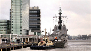 AMSTERDAM Drie schepen van de Navo lopen vrijdag de haven van Amsterdam binnen. De drie fregatten uit Spanje en Duitsland zouden in eerste instantie rond tien uur de haven binnen komen maar dat is door de storm enigszins vertraagd.