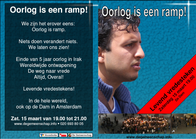 Oorlog is een ramp! - Levend vredesteken op de Dam in Amsterdam -