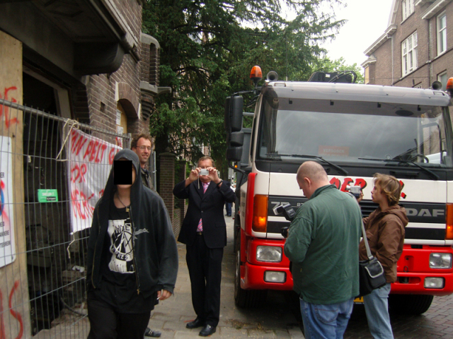 de eigenaar eist ontruiming. De pers druppelt binnen. De politie doet nog niets. De sfeer is ontspannen. Meer info volgt | | KG | Dordt - 11.06.2008 10:20