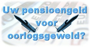 Wie wil er op z’n oude dag profiteren van de winsten van wapenhandel? Campagne tegen Wapenhandel is een kaartenactie gestart om de pensioenfonden uit de wapenindustrie te krijgen.  Stuur een mailtje naar met je naam en adres o.v.v. actiekaarten pensioenen en we sturen je een set kaarten op om te verspreiden onder vrienden, buren, opa's en oma's, collega's, verjaardagsgasten en andere belanghebbenden. Met de kaart roep je pensioenfondsen op om - alle bedrijven uit te sluiten die landmijnen, clustermunitie, kernwapens en wapens met verarmd uranium maken. – alle bedrijven uit te sluiten die meer dan 5% van hun omzet uit militaire productie halen. Hoe meer mensen mee doen, hoe lastiger het voor de pensioenfondsen is om ons te negeren. Zie ook: www.pensioenwijzer.org E-Mail: info@stropwapenhandel.org Website: http://www.stopwapenhandel.org |