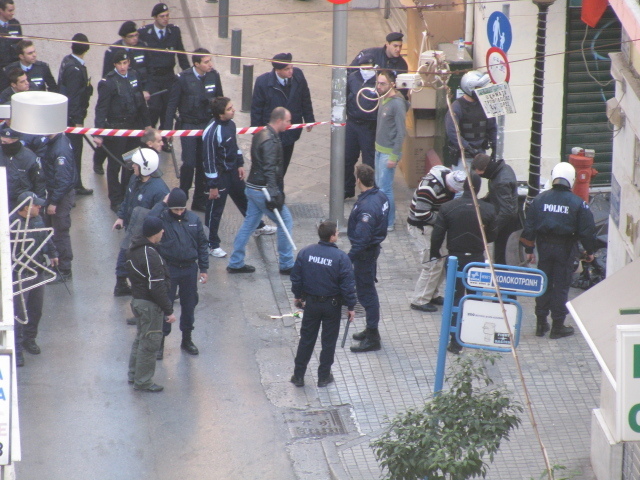 An eyewitness's account of neonazis & police working side by side in Patras.    [ A somewhat hasty but hopefully rather accurate translation from the original: http://indy.gr/newswire/ma3c7airmata-apo-fasistes-stin-patra-5 ] To start with, I'd like to inform you that I'm a university student in Patras & what I report below is an eyewitness account of incidents I experienced & not somebody else's narration/hearsay... Unfortunately, Patras saw the resurrection of the "ghost" of '91, when Nikos Temponeras was murdered. In that case, the parakratikoi [the other-other hand of the greek state: the activist leg of the greek extreme right wing helping the greek state out in a time honored tradition going at least as far back as the '50s] counter-occupied [the already occupied schools] throughout greece after they had been incited to do exactly that by then-minister of education Vassilis Kontogianopoulos. In one of those [counter-occupations], Nikos Temponeras - a teacher - was killed [with a crowbar...] by the leader of ONNED [the youth organization of Nea Dimokratia - which party is ruling the country today, by the way] Ioannis Kalampokas. Today, December 9, saw 2 demos in Patras. One of them at 11 in the morning with zero unrest. The other one at 3 in the afternoon. During this latter demo, extensive unrest was notable. I'd like to remark that no vandalism against small, privately-owned businesses took place. The targets were the Germanos [electronics chain store] & WIND [mobile telephony] stores. Nobody's property was damaged. At some point, certain members of the well-known fascist organization Hrisi Avgi (Golden Dawn), together with plainclothes agents - & not infuriated citizens, as the mass media insist [on calling them] - started throwing rocks & chasing remonstrators with their clubs. For this reason, rudimentary barricades were put together in the streets around the University of Patras department [located there]. These barricades, though, were violated relatively soon with the help of the Riot Squad which kept throwing teargas at large. When the barricades were torn apart, the people started retreating little by little. In the front, street fights between antiauthoritarians & neonazis-ONNED members. Behind them, members of student collectives formed an outer shell [typically called a "chain" & made up by people holding on to each other & to banners, with the rest inside it; much like a fence] in order to protect themselves. The neonazis were running with clubs & knives towards the demonstrators, while at the same time they were hurling rocks [at them]. When, eventually, the neonazis together with the ONNED members got way too close to the people, those people started running panic-stricken. The "infuriated citizens" were yelling slogans against immigrants, anarchists, & leftists. Slogans such as "Anarchists, sons of whores" etc., together with the fact that, later, they took to the direction of the immigrant shanty town & took out knives (a well-documented way of attack, as far as Golden Dawn members go) made it clear once & for all who these "infuriated citizens," as they are called by mass media, are. There are even photos in indymedia patras proving that those damaging stores are the same with those chasing after the demonstrators. Here, I'd like to emphasize that those committing arson & causing damages have no relation whatsoever with either the antiauthoritarian circles or any left wing factions. They are mpahaloi [a specific subclass of people subscribing to some vague nihilist ideology - if they subscribe to any ideology at all - & in it for the excitement of wreaking havoc], agents provocateurs, & hooligans... According to certain information (I haven't crosschecked it), a demonstrator was stabbed & carried to the hospital. As I'm writing this (3 in the morning), the center of Patras is chokefull of armed neonazis & plainclothes agents. Personally, I'm not sleeping at home tonight, because I can't get there... For one more time, the shadow state acts with the police's blessings. Naturally, it's the government who's behind all this & who's the sole one responsible for this parade of shadow state antics & violence. The only way to crush terrorism is mas demos... The government's aim is plain to see: to keep the people away from demonstrating by using violence & terrorism. If they wanted to catch the "hooded ones" they'd done it! The mass media play the role of the sycophant repeating inaccuracies... To the streets, then, to crush terror... TGL |