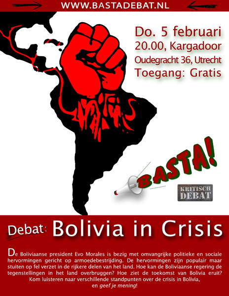 Debat: Bolivia in Crisis, Do. 5 Feb. in Utrecht Basta Deba Utrecht - 02.02.2009 12:08