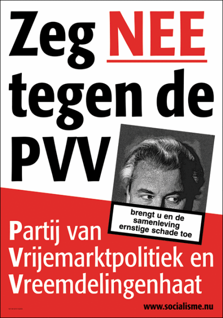 De AFA is gelukkig niet de enige groep die zich inzet tegen deze racistische partij; in de wijk Kruiskamp zagen we tot ons grote genoegen nog maar enkele gescheurde resten van wat ooit een PVV-poster was geweest, en uit het Soesterkwartier komen berichten over met stront besmeurde posters van deze extreemrechtse groep.