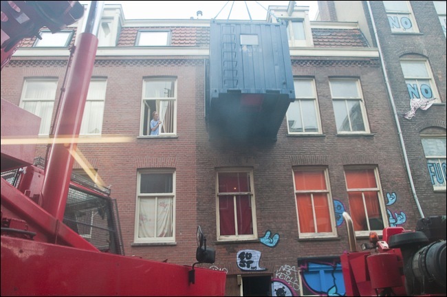Hoera, de ministeris ook een pot - Het terrein van de Havenloodsen aan de Zeeburgerkade is vanmorgen met veel politie ontruimd. Maar de afgelopen nacht is er hevig contact geweest met het Minsiterie van Landbouw en Visserij (Hoera, Gerda Verburg is ook een pot!) en daardoor is er in het kader van de handhaving een sloopverbod voor in ieder geval twee weken afgekondigd. Op YouTube is aanstonds te zien hoe de vleermuizen zich verzetten tegen de invasie van mannen in blauwe pakken. De douanesteiger, middenin in het water kan ook al niet gesloopt worden. Er zitten namelijk twee gezinnen Koetjes te broeden, en door de onvolprezen vogelrichtlijn, moet elk mens 25 meter afstand bewaren. Ook de slopers dus. De stemming aan boord van de Feja was weer opperbest. Ondanks de oprechte verontwaardiging van het zinloze geweld, waaraan het Stadsdeel zich heeft overgegeven. Opvallend was het grote aantal kortharige mannen in burger. Die eigenden zich het recht toe om buurtbewoners weg te duwen. Inmiddels zijn er vergaande plannen voor een zwemfestijn in het water van de kade. Solidair met de Koetjes. Radioverslag a.s. vrijdag na 7 uur op M2M Radio. Na de ontruiming van de SCUB verhuist M2M naar Het Wereldhuis, Nieuwe Herengracht 20, te Amsterdam.