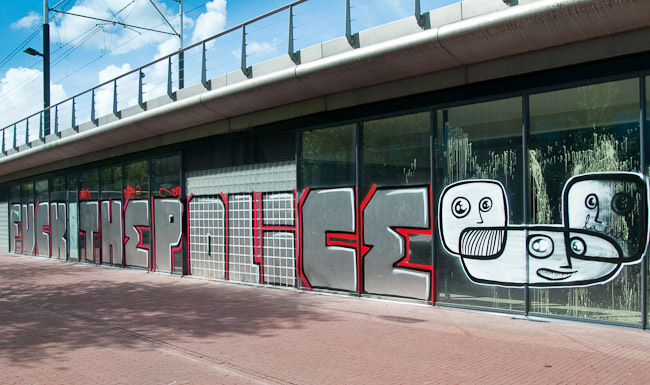 Yesterday night the office of Ymere-Centrum in Mauritskade was paint-bombed as a symbolic act in solidarity with SCUB & many other squats that today were evicted or are still resisting under the speculation of this company and any other real estate agencies. Fuck Ymierda, SCUB Blijft!