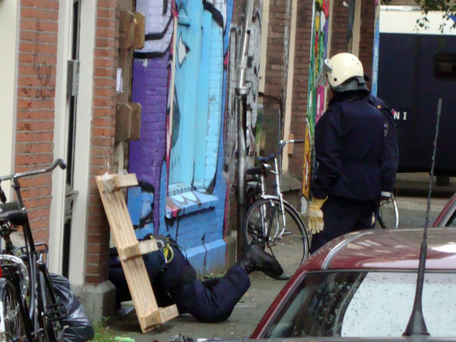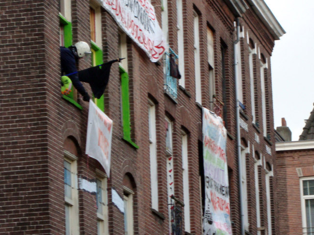 oostzaanstraat 195 is inmiddels ook leeggetrokken vanwege 429s., de bewakings- smart staat al voor de deur. Nr. 179 is nog wel in goede handen. Hieronder buurtbriefje; support en steunbetuigingen van de buurt was vanaf het begin groots, en ook in afgelopen dagen goed merkbaar. Beste buren, Helaas lijkt het einde van onze kraakacties aan de Oostzaanstraat in zicht. Komende dinsdag zal de Mobiele Eenheid de woning op nummer 195 ontruimen. De politie ontruimt de woning niet omdat er iets zinnigs mee gaat gebeuren, maar omdat het ten tijde van de kraak nog geen jaar leeg stond. Wat ons betreft maakt het niet uit hoe lang een pand leeg staat, het gaat er om wat er in de toekomst mee gaat gebeuren. In dit geval is Woningbouwvereniging de Key van plan om het blok aan de Oostzaanstraat geschikt te maken voor de rijksten van de stad. Als het aan de Key ligt, verdwijnen de Opel Astra, Peugeot 106, fietsen en onze bakfiets uit het straatbeeld, om plaats te maken voor hippe scooters, BMW's en olie-slurpende sportwagens. De Spaarndammerbuurt moet een yuppenparadijsje worden, waar slechts heel minimaal ruimte is voor mensen met een normaal inkomen. Dit gebeurt onder het mom van differentiatie in de wijk, wat betekent dat mensen met verschillende inkomens in een wijk moeten wonen. Maar wij vragen ons dan af waarom er nooit eens een villa gesloopt wordt voor sociale huurwoningen. Op jacht naar winst, negeren alle woningbouwverenigingen de werkelijke behoeftes en verlangens van mensen. Mensen die al tientallen jaren in de wijk wonen, zijn gedwongen de wijk te verlaten. Ondertussen tellen de bazen van De Key in hun koophuis de winst. Het is belachelijk dat mensen niet zelf mogen bepalen wat er met hun wijk gebeurt. Het is nog walgelijker dat de enige reden voor de renovaties is dat De Key haar bankrekening wil spekken. Alleen door onszelf te organiseren en massaal te weigeren mee te werken, kunnen we een einde maken aan deze marktwerking. De gekraakte woning aan de Oostzaanstraat 195 wordt dus komende dinsdag ontruimd, maar onze gekraakte woning op nummer 179 blijft behouden. Waarschijnlijk wordt deze pas ontruimd als de renovatie werkelijk gaat beginnen na de zomer. Dan moeten ook alle anti-krakers en tijdelijke huurders eruit. Er is voor hen geen vervangende woning, ze worden in feite op straat gezet. Dit is een proces wat we alleen maar vaker zullen zien. Mensen met een lager inkomen moeten al hun woonrechten vaarwel zeggen, anti-kraak gaan wonen en iedere paar jaar verhuizen. En dit terwijl de rijken overal kunnen gaan wonen waar ze willen. Met de aankomende ontruiming, zal ons verzet niet gebroken zijn. We zullen blijven opkomen voor onze eigen belangen en die van onze medemensen. Voor een vrije en sociale wereld! De krakers ( oostzaanstraat@gmail.com) | | kraken gaat door | anonymous - 07.07.2009 16:06