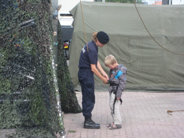 Wereldhavendagen en marine te Rotterdam op 4/5/6 september. Kinderen die mochten schieten en bepakkingen om mochten hebben en een preventieve arrestatie.    Tijdens een van de wereldhavendagen ben ik gearresteerd omdat ik zogenaamd niet wilde meewerken aan de identificatie plicht. De marechaussee die mij onderhand stond op te wachten en achtervolgden noemde mij bij mijn naam toen ik hen aansprak of ik iets voor hen kon doen. Men vroeg of ik weer foto's van oorlogsslachtoffers wilde laten zien waarop ik mijn materiaal liet zien. De baas van de aanwezige marechaussee wilde ondanks dat hij mijn naam wist mijn identiteitsbewijs hebben. Daar ik hem de regels ,opgesteld door de nationale ombudsman noemde en het door een advocaat telefonisch liet bevestigen,heeft hij mij staande gehouden. Ondanks dat ik hem toch mijn rijbewijs gaf ,wilde mijn ding doen,werd ik gearresteerd. Ik wilde personeel werven voor defensie en wel 45 plussers en arbeidsongeschikten daar zij meer ervaring hebben in het ondersteunen en een luisterend oor bieden aan oorlogsslachtoffers en ik acht hen ook beter in staat om plat gebombardeerden steden weer op te bouwen.Jongeren zouden dat hun toekomst kunnen opbouwen en ouderen zouden dan naar het front kunnen. Dit ivm het enorme probleem wat vast en zeker ook tijdens Prinsjesdag besproken zal worden "De Vergrijzing" Ik zou ouderen dan de foto's van plat gebombardeerden steden laten zien en de bijbehorende slachtoffers.Natuurlijk zijn oorlogsslachtoffers niet prettig om naar te kijken en als de politie of marechaussee die beelden aanstootgevend vind dat zouden wij er alles aan moeten doen om geen oorlog te voeren. Ik werd door een rij marechaussee naar een busje begeleid( hadden ze die maar in Hoek van Holland gehad) en na een periode overgedragen aan de politie. De twee instanties hebben voor de overdracht natuurlijk even overlegd over hoe lang ik vast gehouden zou kunnen worden. Het programma was om 18.00 uur afgelopen. Ik werd gefouilleerd en afgevoerd. Ook op het bureau wilde men mij fouilleren maar dat wilde ik absoluut niet en heb mij vrijwel geheel uitgekleed. Geen wapens,drugs of wat dan ook verstopt in mijn kleding of op mijn blote lijf,zelfs niet in mijn sokken. Uren mocht ik in een cel zitten waar ik gek werd van de bel die wel een kwartier bleef afgaan toen ik belde om naar de wc te gaan. Ik begrijp nu wat marteling door geluid is,helaas vond de man van een particulier beveiligingsbedrijf dit mijn straf. Ik moest weten waar ik zat"een arrestanten blok". De verklaring die de marechaussee had afgelegd als reden tot mijn arrestatie was"verstoring van de openbare orde". Er was een marinier die kwam kijken wat er aan de hand was toen ik werd gearresteerd,hij riep "was het maar oorlog ,ik verveel me rot" Hierop reageerde ik dat oorlog dood en vernietiging is. Ik zou zelf zijn gaan roepen naar de marinier en op die manier de orde verstoord hebben,pffff. Al mijn sandwich borden met foto's en teksten zijn in beslag genomen. foto's die overal gepubliceerd zijn en de gehele wereld rond zijn gegaan. Een lego boot met op het zeil de Amerikaanse militair met een groep blote Iraakse gevangenen. De officier van justitie zou mijn teksten beoordelen en evt binnen drie dagen retourneren. De volgende dag ben ik terug gegaan,terug gegaan om mij niet te laten beperken door machtsmisbruik van wie dan ook. Ik werd gelijk opgewacht door mannen van de marechaussee waaronder een man die ik al eerder had gezien. Hij heeft er voor gezorgd dat men mij met rust zou laten en was nieuwsgierig hoe mijn middag was verlopen. Met hem heb ik heel aardig kunnen praten over de gehele gang van zaken rondom de arrestatie. Ik heb foto's genomen van het marine dorp waar kinderen mochten schieten,wapens mochten vast houden en noem maar op. Zouden deze kinderen ook schieten als er een foto van een oorlogsslachtoffer achter zou hangen,zouden zij schieten als zij een foto van een plat geschoten dorp zouden zien? Aan een vader heb ik het gevraagd en hij dacht dat zijn zoon dan niet zou schieten. Natuurlijk weet defensie dit en daarom willen zij geen foto's van de oorlog op hun terrein want stel je voor en komt NIEMAND. Ik zal de boete die ik krijg niet betalen en de mensen die bij de arrestatie aanwezig zijn geweest op roepen om te getuigen tegen deze preventieve arrestatie. |