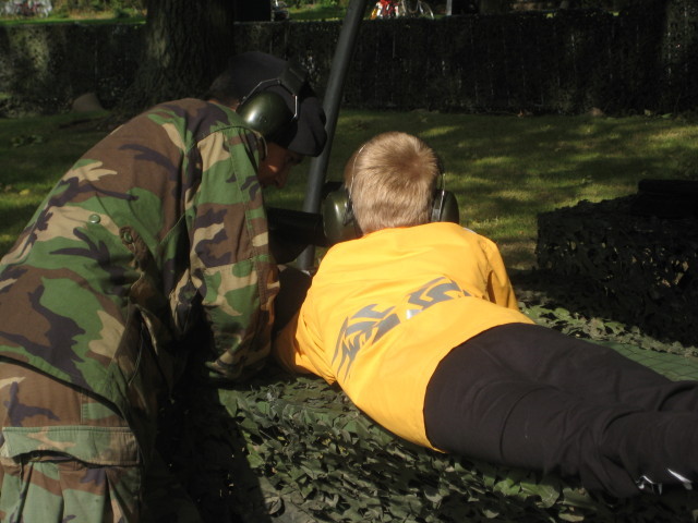 Het eerste kind mocht schieten op de schietbaan maar door het licht kwam hij niet duidelijk op de foto.Daarom heb ik hem later gefotografeerd. Het andere kind was denk ik 11 jaar.