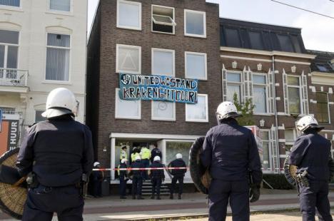 OM 13:00 uur is het pand dat zondag gekraakt is ontruimd. De ontruiming verliep in eerste instantie rustig maar ging gepaard met veel machtsvertoon. Toen de bezetters geärresteerd waren, is er om totaal onduidelijke redenen hard gechargeerd tegen de sympathisanten. Hierbij zijn nog circa 12 arrestaties verricht.  Poltitie bezig met ontruiming In het pand zijn circa 9 mensen aangehouden. Dit gebeurde met inzet van 5 ME-bussen, afzetten van de straat maar was wel rustig. Binnen een half uur is iedereen ingeladen. Hierna liepen sympathisanten richting het pand, om aldaar te proberen bezittingen die waren achtergebleven terug te krijgen. Toen men vervolgens gesommeerd werd naar de andere kant van de straat te gaan, is dit netjes gebeurd. Vervolgens werd er om totaal onduidelijke redenen (of misschien zonder reden) besloten alsnog bijna alle sympathisanten in te rekenen. Dit gebeurde bijzonder hardhandig. Mensen werden door de platte pet met wapenstok tegen de grond aangeslagen en terwijl zij op de grond lagen alsnog gemept. Andere mensen die al ver weg waren van het gebeuren, werden alsnog ingerekend door stillen en motoragenten. Gisteren is door krakers en advocaat Marcel Schuckink-Kool een kort geding aangespannen tegen de staat. Dit omdat de driehoek wilde ontruimen vanwege huisvredebreuk. Alhoewel dit kort geding op 10 oktober dient voor het hof van Arnhem, heeft de driehoek blijkbaar besloten om alsnog te ontruimen. Dit alles terwijl het pand duidelijk leegstond ten tijde van de kraak. Meteen na de ontruiming is antikraakbureau Ad Hoc in de panden getrokken. blijkbaar is dát geen huisvredebreuk. VANAVOND IS ER EEN GELUIDSDEMO VOOR ALLE ARRESTANTEN. TEGEN MACHT(SVERTOON) VAN DE POLITIE. BLIJKBAAR HOEFT DE DRIEHOEK HET NIET AL TE NAUW TE NEMEN MET DE WETTEN DIE ZIJ VERTEGENWOORDIGEN. MISSCHIEN DENKEN ZE DAT ER AL EEN KRAAKVERBOD IS?? KOM ALLEMAAL: BEL JE BEKENDEN VOOR MEER INFO! KRAKEN GAAT DOOR Onze piketadvocaat is Dick Visschers uit Elst. KRAKEN GAAT DOOR |