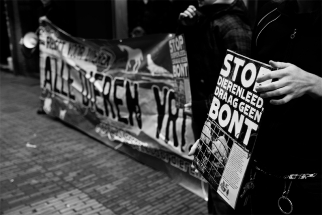 Timetable and list of targets  Friday 16 October 12.30: Meet at Utrecht Central Station, by the blue departures board 13.00: Anti-fur demonstrations 13.00-14.00: Leder Paleis, Achter Clarenburg 41 14.00-15.00: River Woods, Mariastraat 49a 15.00-16.00: Pulls, Steenweg 14-16 16.00-17.00: Players, Oudkerkhof 8 and McGregor, Oudkerkhof 11a 17.00-18.00: The Society Shop, Oudkerkhof 2-4 18.00: Dinner and film showing Saturday 17 October 10.30: Meet at Utrecht Central Station, by the blue departures board 11.00: Anti-fur demonstrations: New campaign against 'Image' clothing. 11.00-13.00: Image, Oudkerkhof 48 and 53 13.00-15.00: Image, Lijnmarkt 23 and 25 15.00: Prepare food, hand out flyers, make a zine 18.00: Food Not Bombs, Ganzenmarkt 20.00: Film showing Sunday 18 October 10.30: Vegan brunch 12.00: Foie gras demonstrations 12.00-15.00: Hotel Karel V, Geertebolwerk 1 16.30: Anti-deportation demo at Kamp Zeist. Meer info: http://www.indymedia.nl/nl/2009/09/61960.shtml One struggle, one fight! Animal liberation, human rights! E-Mail: info@respectvoordieren.nl Website: http://www.respectvoordieren.nl |