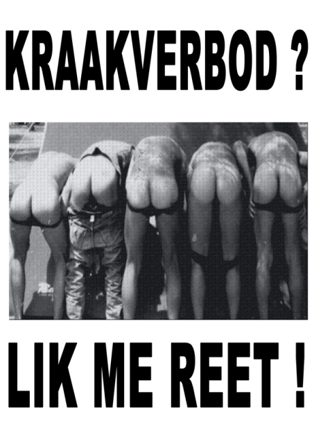 Beste mensen Maak eens wat nieuws. Dit is al te simpel en al te flauw en beledigend op de eerste plaats. Maak iets dat een politiek statement is vanwege het nu aangenomen kraakverbod, beledig dan de politiek, de kapitalistische grootgraaierij, beledig de huisjesmelkers, de regeringspartijen, beledig de initiatiefnemers, beledig het principe dat eigendomsrecht blijkbaar voor woonrecht gaat, ga waar dan ook mee aan de haal, maar niet met een foto afkomstig uit het rariteitenkabinet van een voorganger van Wilders of Janmaat of één van deze twee zelf. Of beeld jezelf af als met bezwaarde kloten of zo. | | Kraakverbod? | Moonshine - 25.10.2009 00:36