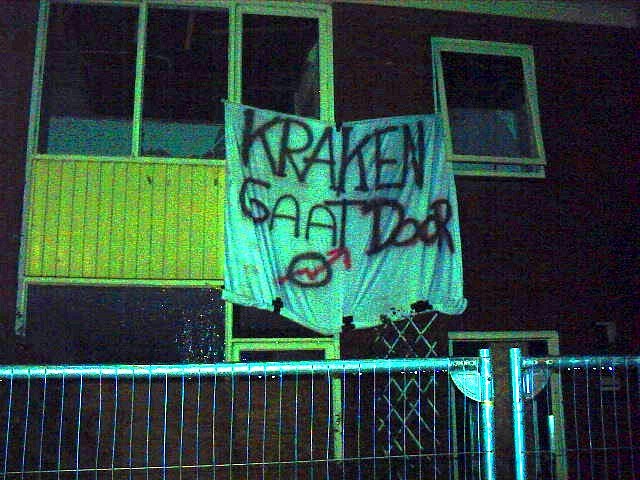 zondag nacht was het weer eens tijd voor wat actie in twente. In de leegstaande sloopwijk Berflo Es werd aandacht getrokken op de Woningsnood.  slooppand 2 In verband met de landelijke kraakactiedagen heeft een klein groepje activisten gister 2 spandoeken weten op te hangen in de sloopwijk Berflo Es. Het is een jaren 50/60 arbeiderswijk die nu moet gaan wijken voor nieuwbouw, welke waarschijnlijk voor jou en mij onbetaalbaar wordt. Voor de sloop waren de huizen (ruim 8 flats en ca. 50 rijtjeshuizen) nog in prima staat om te bewonen. Er was een lange discussie omdat de gemeente de sloopkosten in eerste instantie niet kon opbrengen. Er is nu helaas wel begonnen aan de sloop. Sociale en betaalbare huisvesting moet blijven, zolang dit niet gebeurt zal kraken doorgaan! -(/-\)- Autonome Kraakgroep Twente E-Mail: tuindorpstaat@gmail.com |
