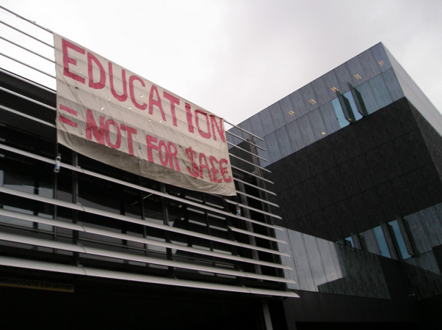 PERSBERICHT, Utrecht, 10 November 2009: Feestelijke Opening van de Internationale Actieweek: Kritische Studenten hangen een spandoek vanaf het van Unnik gebouw van de Universiteit Utrecht met de tekst, ‘Education is NOT for $AŁ€, uit protest tegen de commercialisering van het Hoger Onderwijs.  Kritische Studenten Utrecht heeft vandaag, dinsdag 10 november, als onderdeel van de Internationale Actieweek, Education is NOT for $AŁ€, om 12.45 uur een spandoek gehangen vanaf het van Unnik gebouw van de Universiteit Utrecht op de Uithof. De internationale actieweek, waar studenten in meer dan 30 landen bij betrokken zijn, is een reactie op de uitverkoop van het hoger onderwijs en wetenschappelijk onderzoek aan Big-Business. Tijdens deze actie heeft Kritische Studenten Utrecht informatie aangeboden over de negatieve gevolgen voor onderwijs en onderzoek veroorzaakt door commercialisering en dalende overheidsinvestering. De noodzaak om nu positieve veranderingen te bewerkstelligen werd benadrukt. Verder werd er een pislijst voorgelezen vanaf een zeepkist (van bierkratjes gemaakt) waar tien redenen werden gegeven om ‘pissig’ te worden van de huidige situatie. Ook werden er plannen voorgelezen om onderwijs te verbeteren. Verder was de actie voorzien van muziek uit een omgebouwde Kliko en werd er warme chocolademelk geserveerd om de studenten op te warmen tijdens deze koude buitenactie. Kritische Studenten Utrecht zet zich in voor vrij en emancipatoir publiek onderwijs. Deze organisatie verzet zich tegen de commercialisering, economisering en privatisering van het hoger onderwijs. Kritische Studenten Utrecht strijdt voor meer macht voor studenten, docenten en staf door middel van democratisering binnen het hoger onderwijs. ------------------------------------------------------------------------------------------------------- Voor verdere informatie: ... Kritische Studenten Utrecht Contactpersoon: Jilles Mast Tel.: +31(0)6-41765342 Email: kritischestudentenutrecht@gmail.com Website: www.kritischestudenten.nl E-Mail: kritischestudentenutrecht@gmail.com Website: http://www.kritischestudenten.nl |