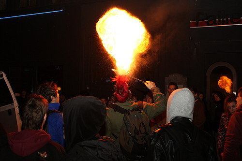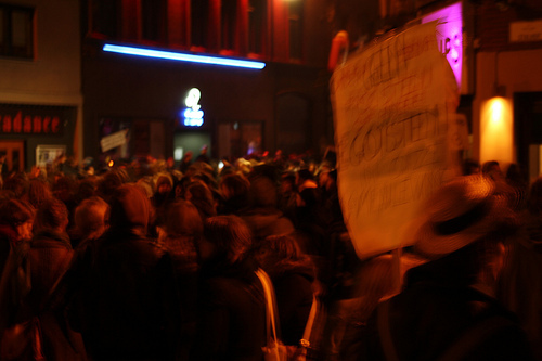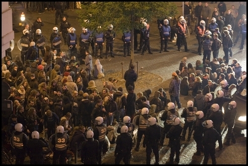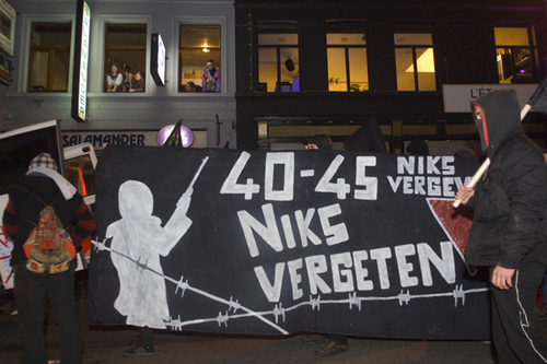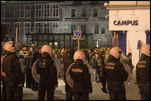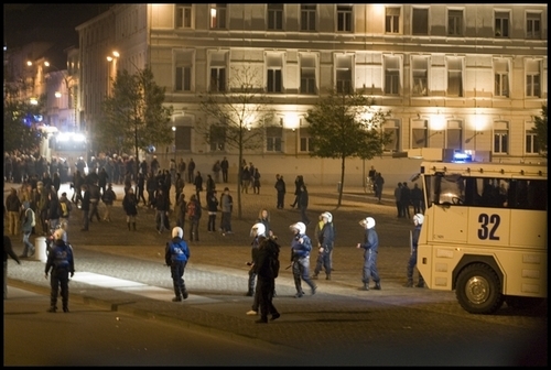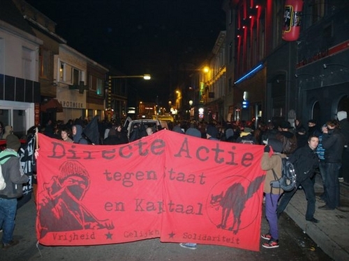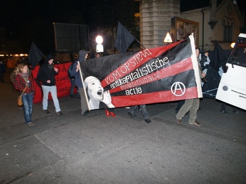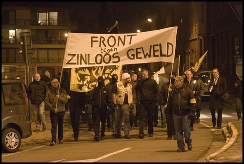 http://aff.skynetblogs.be/post/7432510 "Een slogan tegen geweld werd niet gehoord. Het zou trouwens nogal ongeloofwaardig klinken als je zag wie er opstapte. Naast Kris Roman en de usual suspects van het N-SA onder andere ook BBET-kopstuk Tomas Boutens en Groen Rechts-man Wolf Kussé. Die laatste bijvoorbeeld, in een parka jas in camouflagekleuren en het gezicht grotendeels met een sjaal verstopt, zag er niet bepaald love and peace uit. Wantrouwig ook voor de aanwezige fotografen. Bij het einde van de optocht, voor nog een veertigtal getrouwen, legde N-SA'er Thierry Vanroy in een toespraak uit dat “wij” (zij, dus) de enige zijn die zich verzetten tegen de nieuwe wereldorde. Ruben Rosiers (ook al N-SA) bracht buitenlandse geestesgenoten onder de aandacht die door links belaagd werden of door ‘het systeem’ de gevangenis ingedraaid werden" | |